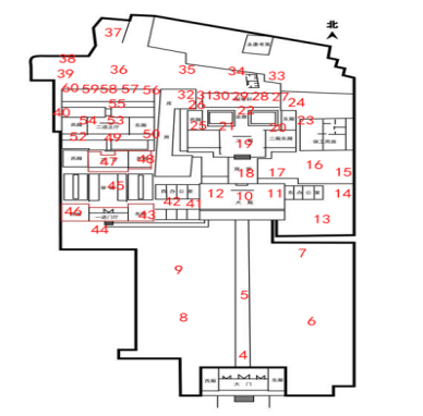 平面現(xiàn)狀圖:包含各層平面、屋頂平面和仰視平面;繪制室內(nèi)結(jié)構(gòu)構(gòu)件和非結(jié)構(gòu)構(gòu)件,完整表達(dá)空間布局;反映周邊環(huán)境、出入口、圍墻、院落、天井、門窗、洞口古樹、古井等要素;繪制室內(nèi)材質(zhì)及體現(xiàn)歷史風(fēng)貌的室外地面材料;繪制典型或具有重要?dú)v史、藝術(shù)價(jià)值的室內(nèi)布置。