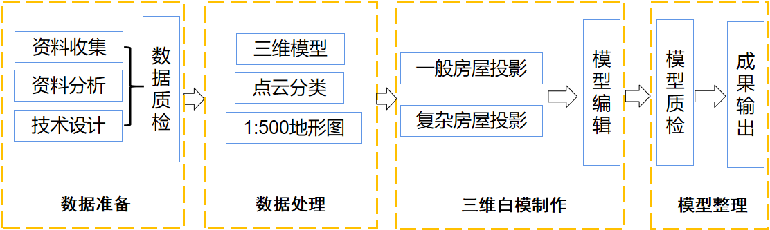 該項(xiàng)目我們采用了自主研發(fā)的AIMS航空集成多傳感器航攝儀,可一次性獲取激光點(diǎn)云、傾斜三維、高光譜等多模態(tài)數(shù)據(jù)。通過AIMS獲取的每平米50個點(diǎn)高密度激光點(diǎn)云直接生成白模,避免了冗長的數(shù)據(jù)處理過程、節(jié)約了飛行成本;DEM與白?;谕惶讛?shù)據(jù),與地形更為貼合,效率大幅度提升,包含的建筑位置、高度、形狀等信息為三維數(shù)據(jù)的分析與處理提供了關(guān)鍵數(shù)據(jù)。在此基礎(chǔ)上,我們對一般房屋、帶屋脊線房屋及多平面復(fù)雜房屋進(jìn)行了精細(xì)化處理,建筑輪廓干凈,屋頂結(jié)構(gòu)清晰可辨。