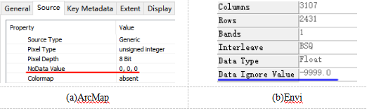 圖 3 常見(jiàn)GIS遙感軟件對(duì)無(wú)數(shù)據(jù)值的支持