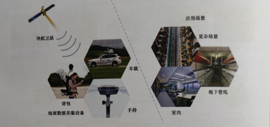針對(duì)城市中復(fù)雜場(chǎng)景、室內(nèi)、地下管線等衛(wèi)星遙感以及航空攝影手段難以獲取數(shù)控的對(duì)象,可在地面進(jìn)行數(shù)據(jù)采集,如圖 2-2 所示。實(shí)景三維地面數(shù)據(jù)采集主要有車(chē)載背包、手持等方式,通過(guò)將激光掃描儀、影像采集設(shè)備、定位定姿設(shè)備、同步控制器等多傳感器集成于一體,并根據(jù)采集需求將設(shè)備搭載在測(cè)量車(chē)上,對(duì)建筑、道路進(jìn)行高精度實(shí)景三維數(shù)據(jù)采集,或通過(guò)背包、手持的方式對(duì)室內(nèi)室外、地下管線進(jìn)行數(shù)據(jù)采集。