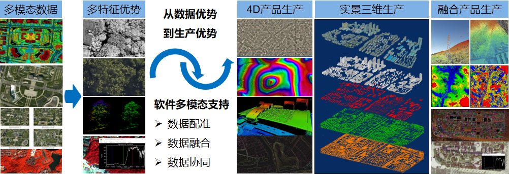 地理信息資源是重要的基礎性、戰(zhàn)略性信息資源,航空攝影測量是地理信息資源建設的主要手段之一。項目研究前,我國航空遙感數(shù)據(jù)采集仍以單模態(tài)、多次采集的模式為主,不僅成本高、周期長,不同模態(tài)的數(shù)據(jù)之間時相不一致,后期融合、處理和應用難度大,難以滿足新型基礎測繪、實景三維中國、智慧城市、森林資源一張圖、數(shù)字流域等領域的復合型、低成本、快速更新的需求。