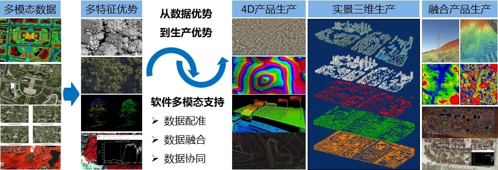 支持多源高分辨率影像聯(lián)合處理,通過對影像進(jìn)行空三、密集匹配、構(gòu)網(wǎng)、紋理映射,輸出Mesh實景三維模型,結(jié)合激光點云數(shù)據(jù),生成DSM、DEM、DOM、DLG等數(shù)據(jù)產(chǎn)品,豐富成果類型。