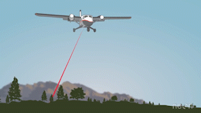第一個組成部分,就是安裝在飛機上的LiDAR設(shè)備本身,該設(shè)備用于對地面進行逐行掃描。LiDAR系統(tǒng)所發(fā)出的是綠光或近紅外光,因為地表的植被會對這兩種光產(chǎn)生較強的反射。