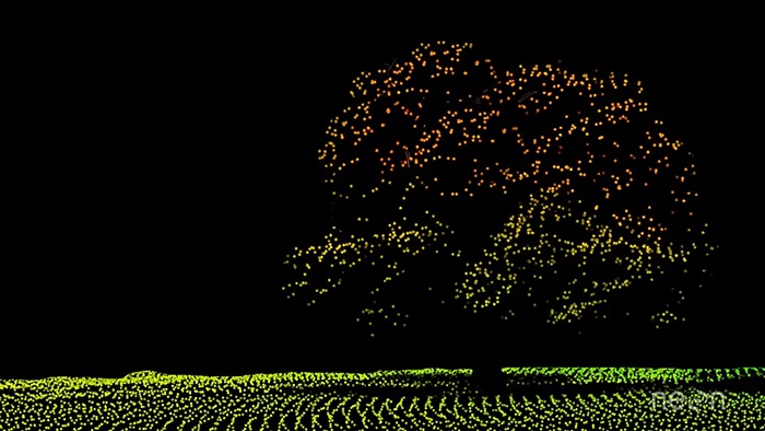 LiDAR系統(tǒng)還有一個非常重要的特性,就是它所發(fā)出的脈沖不僅會到達樹頂并返回,有時候也可以穿透某些地物。就好像陽光照進樹林中一樣,LiDAR的光束也同樣可以穿透樹冠,并反射樹冠以下的部分。LiDAR系統(tǒng)這種不僅可以記錄樹頂反射信息,而且可以穿過樹冠直達地面的特性,使得LiDAR系統(tǒng)成為在林業(yè)研究中非常有用的工具。這種可以穿透樹冠并提供多次回波的特性,可以告訴我們有關(guān)樹林結(jié)構(gòu)的更多信息。比如,它可以告訴我們樹的形狀,或者樹林樹葉的密度,有時甚至可以提供樹林里地面灌木的情況。