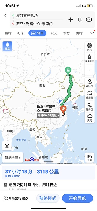 說出來你可能不信,我們量了從漠河到南京的距離,3119公里。